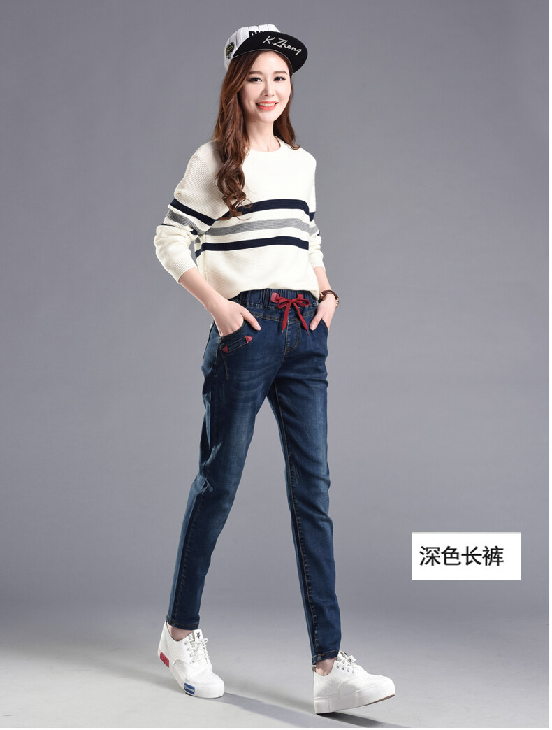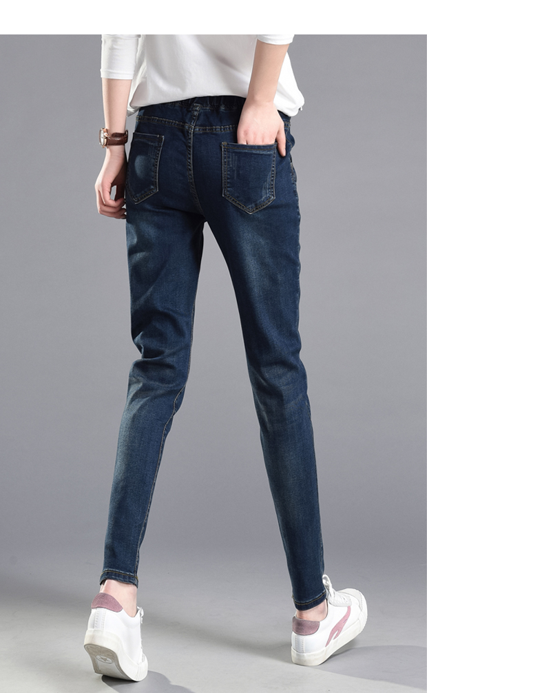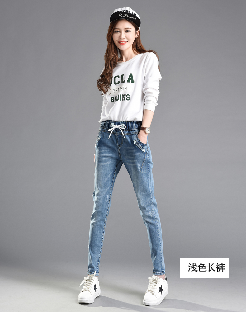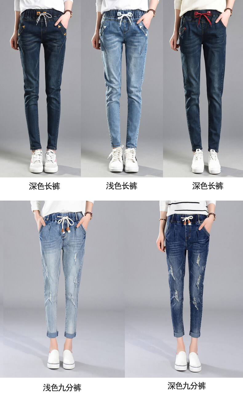 松紧腰高腰牛仔裤女式春秋韩式紧身裤宽松修身裤2021新款哈兰长裤