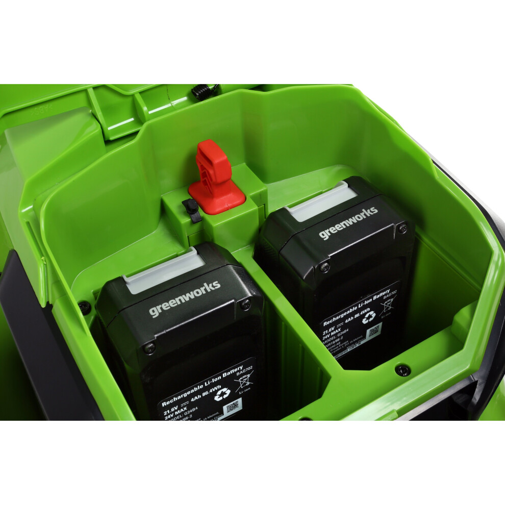• 2 x NEW GENERATION LITHIUM 24V 4Ah BATTERIES AND BRUSHLESS MOTOR – engineered for reliability, lower maintenance and longer lifespan, powered by advanced batteries that you can use in any Greenworks 24V tool to cut waste, save money and storage space