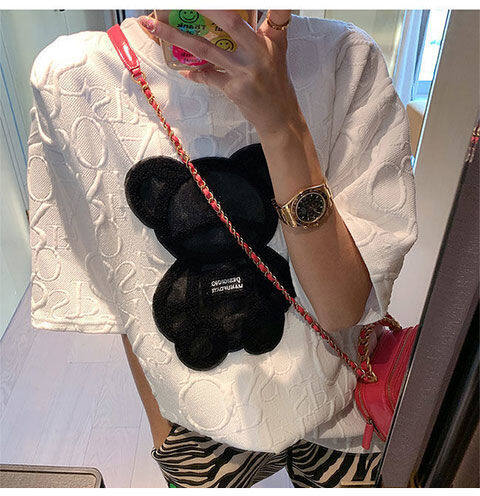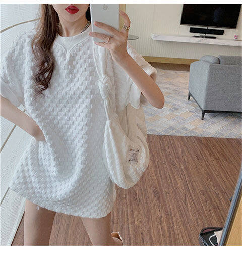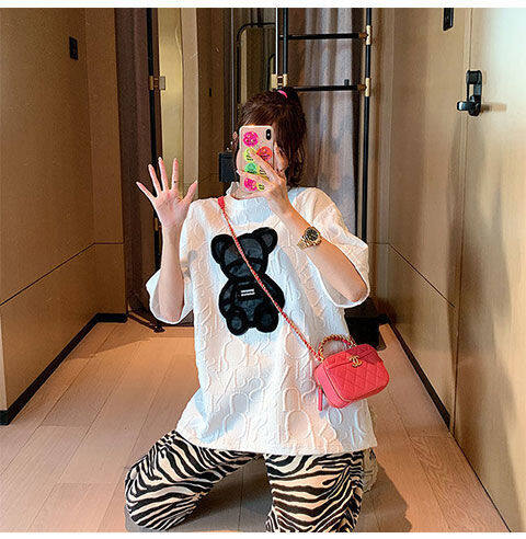 【40-80Kg】加大码女式T恤韩版BF熊刺绣短袖宽松全配休闲打底衬衫